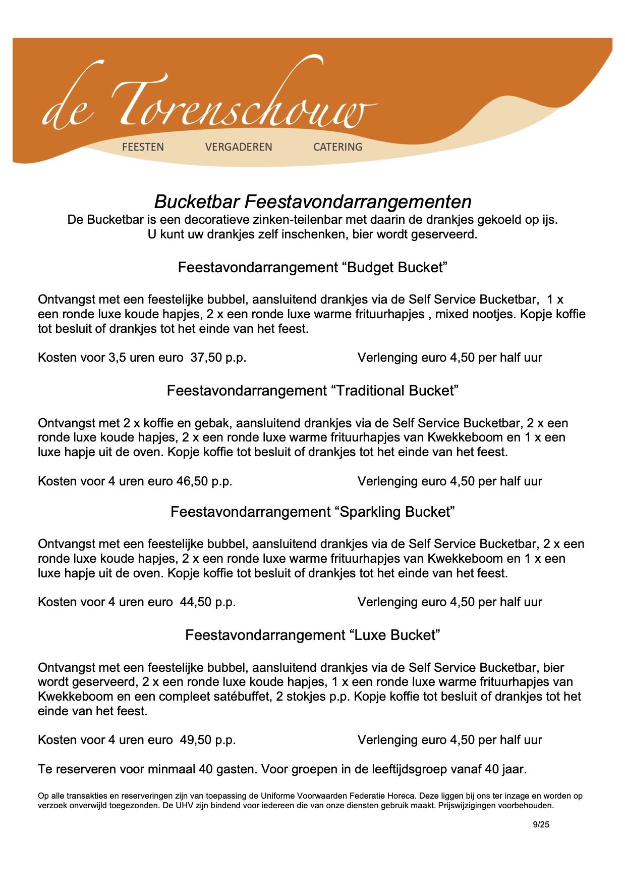 Deze arrangementen kunt u makkelijk uitbreiden met verschillende hapjes. Drankjes van Hollands plateau onbeperkt of losse prijzen.